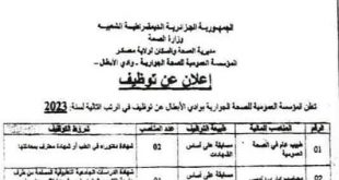 أكمل القراءة »اعلان عن توظيف بالمؤسسة العمومية للصحة الجوارية بوادي الابطال معسكر