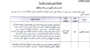 اعلان عن توظيف مديرية التربية لولاية اولاد جلال ads تعلن مديرية التربية لولاية اولاد جلال عن فتح مسابقة توظيف في الرتب المبينة ادناه ملحق بالمخبر عدد المناصب 02 منصب نمط التوظيف: مسابقة على اساس الشهادة ملف المسابقة على أساس الشهادة طلب خطي يتم تضمين …