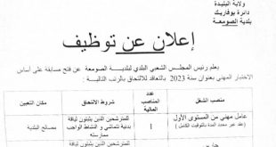 أكمل القراءة »اعلان عن توظيف ببلدية الصومعة ولاية البليدة