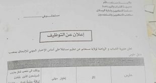 أكمل القراءة »اعلان عن توظيف بمديرية الشباب و الرياضة لولاية مستغانم