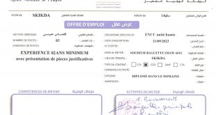 الفرع الولائي للتشغيـل سكيكدة الملحقة المحلية للتشغيل سكيكدة عرض عمل المؤسسة الوطنية للقنوات enac ads تعلن الملحقة المحلية للتشغيل سكيكدة عن عرض عمل بالمؤسسة الوطنية للقنوات enac كما هو موضح ادناه الهيئة المستخدمة المؤسسة الوطنية للقنوات enac المناصب المطلوبة سائق الة متعدد عدد المناصب …
