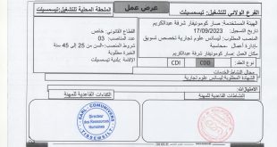 أكمل القراءة »عرض عمل بمؤسسة صار كومونيفار شرقة عبد الكريم