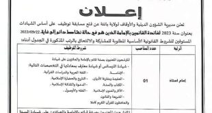 أكمل القراءة »اعلان عن توظيف بمديرية الشؤون الدينية والأوقاف لولاية باتنة