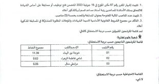 نتائج مسابقة التوظيف المدرسة الوطنية العليا للري البليدة ads المدرسة الوطنية العليا للري البليدةنتائج مسابقة توظيف لسلك الأساتذة المساعدين قسم “ب”تعلن المدرسة الوطنية العليا للري البليدة عن نتائج مسابقة توظيف لسلك الأساتذة المساعدين رتبة استاذ مساعد قسم”ب”يتقدم السيد مدير المدرسة الدكتور عبد الحميد حبوش …