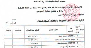 اعلان مديرية التربية الجزائر وسط ads نتائج الامتحان المهني بعنوان سنة 2023 في انتظار التدقيق من طرف مصالح الوظيف العمومي لمختلف الرتب: الرتبة: مفتش التربية الوطنية – جميع التخصصات الرتبة: مفتش التعليم المتوسط (امتحان المهني) التخصص: اللغة الفرنسية الرتبة: مفتش التعليم الابتدائي (امتحان المهني) …