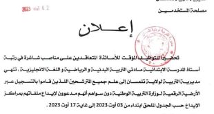 أكمل القراءة »توظيف عن طريق التعاقد أستاذ المدرسة الابتدائية التربية البدنية و اللغة الانجليزية بمديرية التربية لولاية تلمسان