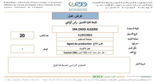 الملحقة المحلية للتشغيل راس الوادي عرض عمل شركة SPA OXXO ALGERIE ads تعلن الملحقة المحلية للتشغيل راس الوادي عن عرض عمل بشركة SPA OXXO ALGERIE كما هو موضح ادناه الهيئة المستخدمة شركة SPA OXXO ALGERIE المنصب المطلوب عون انتاج عدد المناصب 20 مكان العمل …