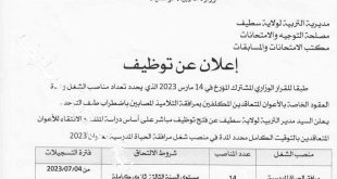 أكمل القراءة »اعلان عن توظيف بمديرية التربية لولاية سطيف