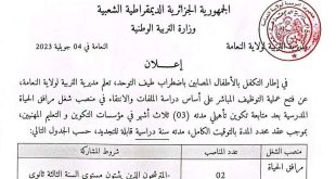 أكمل القراءة »اعلان عن توظيف بمديرية التربية لولاية النعامة (منصب مستحدث)