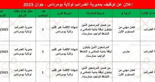 اعلان عن توظيف مديرية الضرائب لولاية بومرداس ads تعلن مديرية الضرائب لولاية بومرداس عن فتح مسابقة توظيف على اساس الاختبار المهني في الرتب المبينة ادناه عامل مهني من المستوى الأول عدد المناصب 03 منصب نمط التوظيف على اساس الاختبار المهني حارس عدد المناصب 03 …