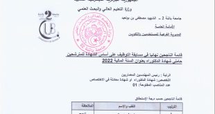 أكمل القراءة »اعلان عن توظيف بمؤسسة وطنية عمومية هامة