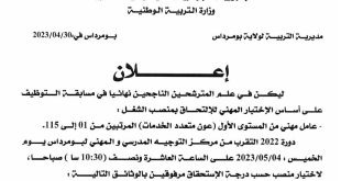 أكمل القراءة »قائمة المترشحين الناجحين نهائيا في مسابقة التوظيف بمديرية التربية لولاية بومرداس