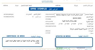 الملحقة المحلية للتشغيل غرداية عرض عمل الديوان الوطني للارصاد الجوية Météo Algérie ads تعلن الملحقة المحلية للتشغيل غرداية عن عرض عمل بالديوان الوطني للارصاد الجوية Météo Algérie كما هو موضح ادناه الهيئة المستخدمة الديوان الوطني للارصاد الجوية Météo Algérie المناصب المطلوبة مهندس دولة في …