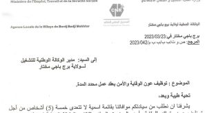 الفرع الولائي للتشغيل برج باجي مختار عرض عمل الصندوق الوطني للتقاعد CNR ads يعلن الفرع الولائي للتشغيل برج باجي مختار عن عرض عمل بالصندوق الوطني للتقاعد CNR كما هو موضح ادناه الهيئة المستخدمة الصندوق الوطني للتقاعد CNR المناصب المطلوبة عون وقاية والأمن بعقد محدذ …