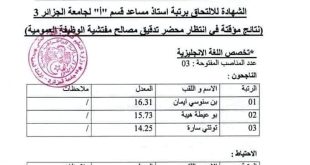 أكمل القراءة »قائمة الناجحين في مسابقة جامعة الجزائر 3 رتبة أستاذ مساعد أ