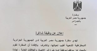 أكمل القراءة »اعلان عن توظيف بسفارة جمهورية مصر العربية في الجزائر