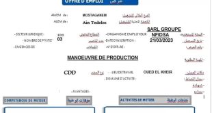 أكمل القراءة »عروض عمل عديدة ومتنوعة بولاية سكيكدة