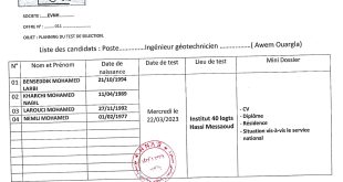 أكمل القراءة »فحص مهني خاص بمؤسسة المدينة الجديدة حاسي مسعود EVNH