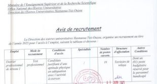أكمل القراءة »اعلان عن فتح مسابقة توظيف بمديرية الخدمات الجامعية
