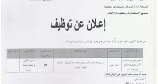 وزارة التربية الوطنية مديرية التربية لولاية أدرار ads إعــــلان تعلن مديرية التربية لولاية أدرار عن توظيف أساتذة متعاقدين في اختصاص التربية البدنية للطورين الإبتدائي والمتوسط. فعلى الراغبين في التوظيف والحاصلين على شهادة الليسانس أو الماستر في الاختصاص المطلوب، التقرب من مصلحة الموظفين والتفتيش بالمديرية …