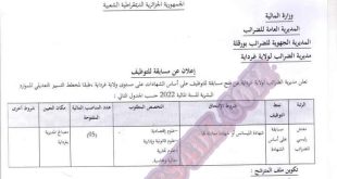 اعلان عن توظيف المديرية الجهوية للاملاك الوطنية بولاية بسكرة ads تعلن المديرية الجهوية للاملاك الوطنية بولاية بسكرة عن فتح مسابقة توظيف على اساس الشهادة وعلى اساس الاختبار بولايتي المغير واولاد جلال في الرتب المبينة ادناه عون مكتب عدد المناصب 02 منصب نمط التوظيف مسابقة …