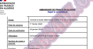 أكمل القراءة »القنصلية الفرنسية بالجزائر توظف أعوان ادارة برواتب محفزة