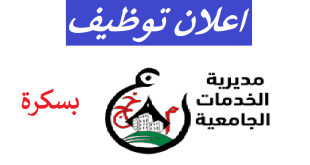 اعلان عن توظيف مديرية الخدمات الجامعية بسكرة ads تعلن مديرية الخدمات الجامعية بسكرة عن فتح مسابقة توظيف على اساس الاختبار المهني في الرتب المبينة ادناه عامل مهني من المستوى الاول بالتوقيت الكامل بعقد غير محدد المدة عدد المناصب 08 نمط التوظيف على اساس الاختبار …