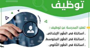 توظيف ؛دعما للفريق التربوي للمدرسة، تعلن إدارة مدرسة الجيل الواعد عن فتح باب التوظيف في المناصب الآتية:أساتذة الطور الابتدائيأساتذة في الطور المتوسطأساتذة في الطور الثانويأعوان إدارة تتمثل شروط التوظيف في:شهادة في التخصص المراد التوظيف فيهخبرة لا تقل عن عام في المجالالإقامة في العاصمة ترسل …