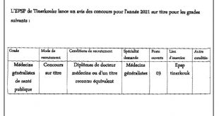 تعلنالمؤسسة العمومية للصحة الجوارية تينركوك بولاية ادرار عن فتح مسابقة للتوظيف في الرتب التالية ads طبيب عام في الصحة العمومية عدد المناصب 03 نمط التوظيف مسابقة على اساس الشهادة تاريخ النشر : 21 اكتوبر 2021 آخر أجل لوضع الملفات : بعد 15 يوم من …