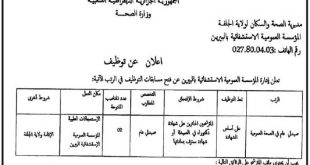 وزارة الصحة مديرية الصحة والسكان لولاية غليزان المؤسسة العمومية الإستشفائية منداس المديرية الفرعية لتسيير الموارد البشرية ads إعلان عن توظيف على طريق التكفل بعد عملية النقل يعلن السيد مدير المؤسسة العمومية الإستشفائية بمنداس عن فتح باب الترشح للتوظيف عن طريق التكفل بعد عملية النقل، …