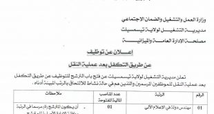 وزارة العمل والتشغيل والضمان الاجتماعي مديرية التشغيل لولاية تيسمسيلت مصلحة الإدارة العامة والميزانية ads إعلان عن توظيف عن طريق التكفل بعد عملية النقل تعلن مديرية التشغيل لولاية تيسمسيلت عن فتح باب الترشح للتوظيف عن طريق التكفل بعد عملية النقل للموظفين المرسمين والذين هم في …