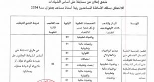 أكمل القراءة »إعلان عن فتح مسابقة توظيف على اساس الشهادة بوزارة الري
