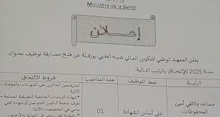 أكمل القراءة »المعهد الوطني للتكوين العالي شبه الطبي يفتح مسابقة توظيف بعنوان سنة 2025 للإلتحاق بالرتب التالية: