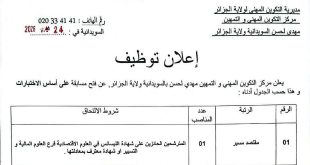 أكمل القراءة »مركز التكوين المهني والتمهين شريف مرسلي ببئر التوتة الجزائر العاصمة توظف: