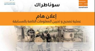 أكمل القراءة »إعلان هام للمترشحين المسجلين في المسابقة الوطنية للتوظيف لسوناطراك