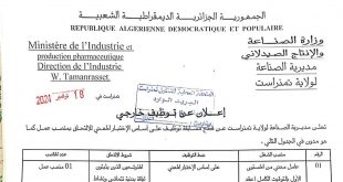 الجمهورية الجزائرية الديمقراطية الشعبية وزارة الصناعة والإنتاج الصيدلاني مديرية الصناعة لولاية تمنراست ads إعلان عن توظيف خارجي تعلن مديرية الصناعة لولاية تمنراست عن فتح مسابقة توظيف على أساس الاختبار المهني للالتحاق بمنصب عمل التالي: مديرية التربية تفتح مسابقة توظيف العمال المهنيين 180 منصب سوناطراك …