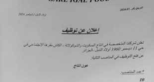 أكمل القراءة »شركة SARL IGAL FOOD المتخصصة في إنتاج البسكويت والشوكولاتة بالجزائر العاصمة توظف