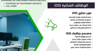 إعلان توظيف (05 مناصب شاغرة) في – أم البواقي – Biowas Makina ads شركة مختصة في صناعة الآلات الصناعية وتقديم حلول مبتكرة من خلال توريد الشركات و المؤسسات الناشئة بالاستثمارات الصناعية وخلق قيمة مضافة.نحن نوظف شركتنا:.#عون_ تجاري (03 ) agent_ commercial#* إدارة المكالمات الواردة …
