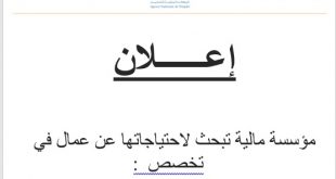 أكمل القراءة »مؤسسة مالية تبحث عن عمال في تخصص: