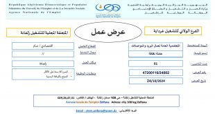 الجمهورية الجزائرية الديمقراطية الشعبية وزارة العمل والتشغيل والضمان الاجتماعي الوكالة الوطنية للتشغيل ads عرض عمل الفرع الولائي للتشغيل غرداية الملحقة المحلية للتشغيل زلفانة مديرية التربية تفتح مسابقة توظيف العمال المهنيين 180 منصب سوناطراك توظف في التخصصات الطبية والادارية وأعوان الأمن مديرية التربية: إستغلال القوائم …