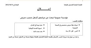وزارة العمل والتشغيل والضمان الاجتماعي الوكالة الوطنية للتشغيل الملحقة المحلية للتشغيل بالجلفة ads إعلان الجلفة في 2025/10/15 مؤسسة عمومية تبحث عن مرشحين لشغل منصب ممرض متطلبات المنصب: شهادة دولة ممرض متخصص في الصحة العمومية. السن: أقل 45 سنة. خبرة مهنية في الميدان. تسوية الخدمة …