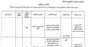 أكمل القراءة »إعلان عن توظيف بجامعة مصطفى اسطمبولي معسكر