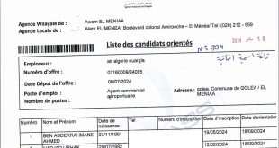 أكمل القراءة »قائمة المرشحين الموجهين في عرض شركة الخطوط الجوية الجزائرية AIR ALGERIE