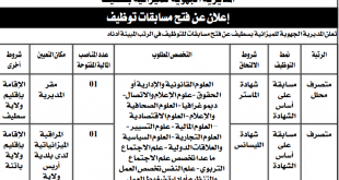 اعلان عن توظيف المديرية الجهوية للميزانية سطيف ads إعلان عن فتح مسابقات توظيف الجمهورية الجزائرية الديمقراطية الشعبيةوزارة الماليةالمديرية العامة للميزانيةالمديرية الجهوية للميزانية بسطيف تعلن المديرية الجهوية للميزانية بسطيف عن فتح مسابقات للتوظيف في الرتب المبينة أدناه: الرتبةالشروط الأخرىمكان التعيينعدد المناصبالتخصص المطلوبنمط التوظيفمتصرفالإقامة بإقليم ولاية …