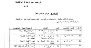 عرض عمل مؤسسة أشغال البناء والأشغال العمومية الكبرى و الري ads شروط الالتحاق بالمناصب: الرقمالمناصبالشهادةالعددالخبرةالسنالجنس01هندسة مدنيةليسانس أو ماستر هندسة مدنية و ما يعادلها01تفوق 03 سنواتلا تفوق 35 سنةذكر02هندسة معماريةليسانس أو ماستر هندسة معمارية و ما يعادلها01لا تقل عن 02 سنةلا تفوق 35 سنةأنثى03إعلام و …