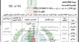 أكمل القراءة »مؤسسة عمومية تبحث عن مرشحين لشغل المناصب التالية: