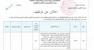اعلان عن توظيف مديرية التكوين والتعليم المهنيين لولاية اولاد جلال ads تعلن مديرية التكوين والتعليم المهنيين لولاية اولاد جلال عن فتح مسابقة توظيف في الرتب المبينة ادناه متصرف عدد المناصب 01 منصب نمط التوظيف: على اساس الشهادة مهندس دولة في السكن والعمران عدد المناصب …