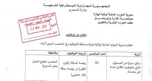 أكمل القراءة »اعلان توظيف بمديرية الموارد المائية لولاية تيبازة