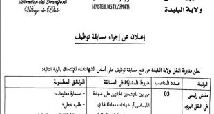 أكمل القراءة »اعلان عن توظيف بمديرية النقل لولاية البليدة