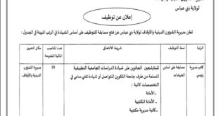 اعلان عن توظيف مديرية الشؤون الدينية والاقاف لولاية بني عباس ads تعلن مديرية الشؤون الدينية والاقاف لولاية بني عباس عن فتح مسابقة توظيف على اساس الشهادة في الرتب المبينة ادناه كاتب مديرية رئيسي عدد المناصب 03 منصب نمط التوظيف على اساس الشههادة ملف المسابقة …